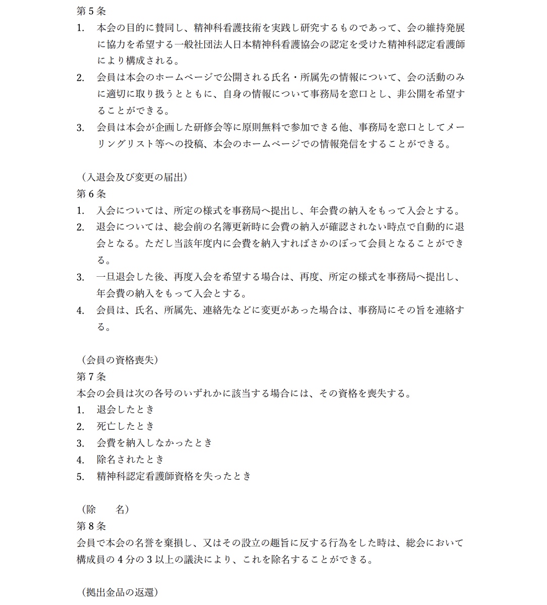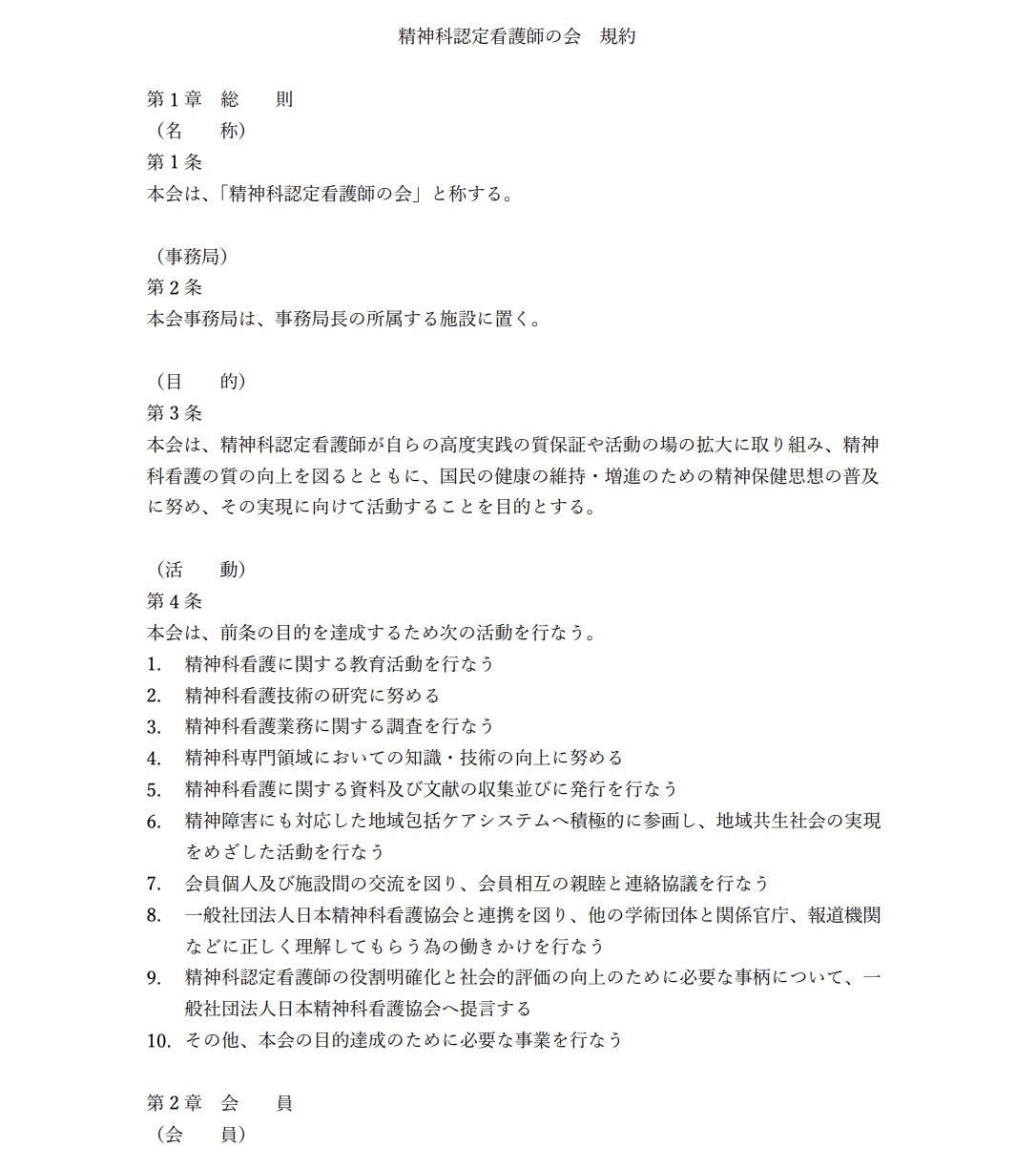 精神科認定看護師の会 規約