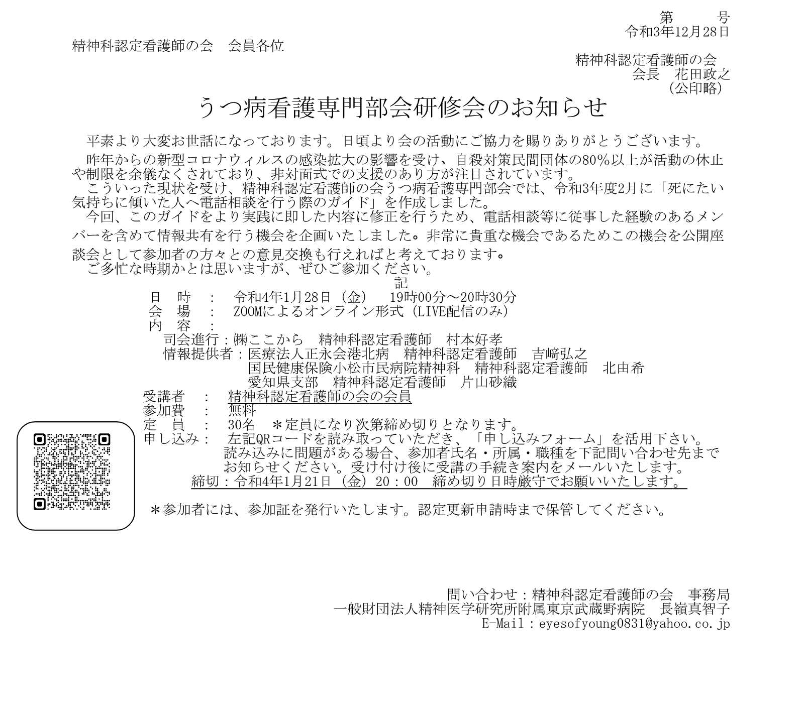 問い合わせ:精神科認定看護師の会 事務局